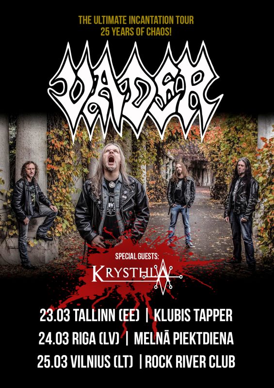 Go Loud Agency is proud to announce that Krysthla (UK) will be joining legendary Polish death metal band Vader as special guests on their three dates in the Baltic States: